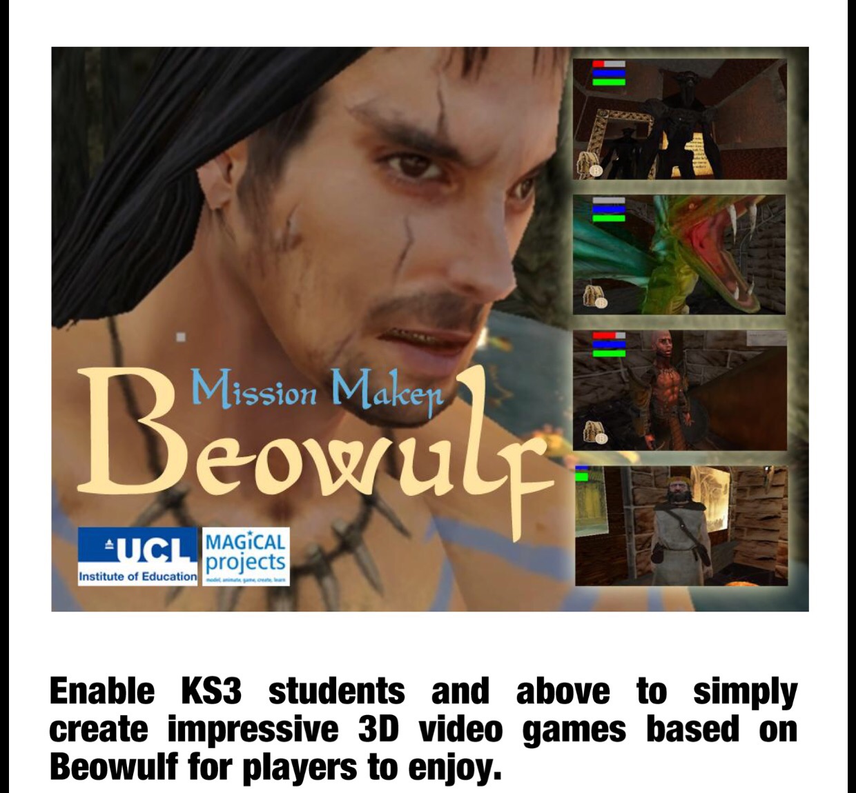 This project grew out of an earlier version, built in Unity during a research project funded by the Arts and Humanities Reseach Council to develop a new game- authoring tool for the Anglo-Saxon epic Beowulf. This collaboration between English, Media and Drama at the IOE with UCL Anglo-Saxon scholars, the British Library, the University of Sydney and Game City, Nottingham, explored how making game adaptations of literary texts can help students at all levels to understand and engage with literature in new ways.
